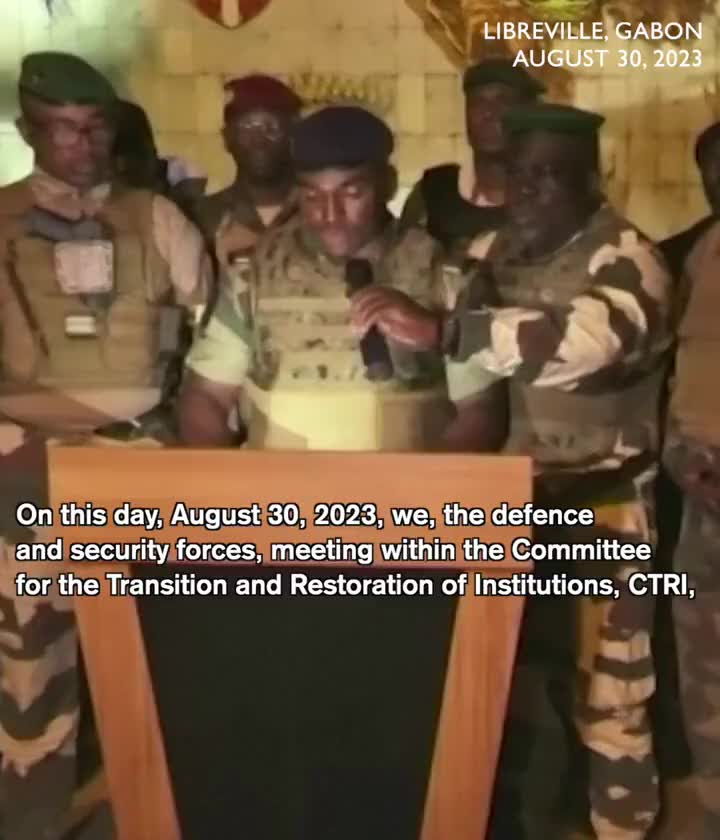Militares do Gabão: "Neste dia, 30 de agosto de 2023, nós, as forças de defesa e segurança... em...